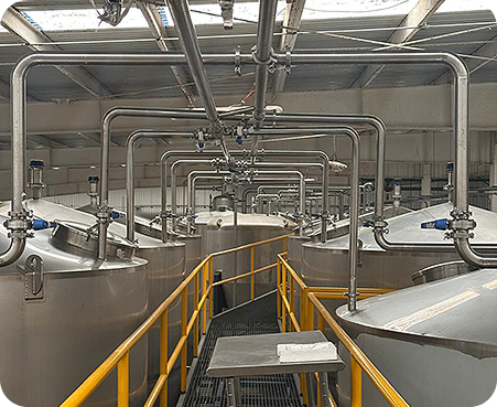 Capacidad de producción de 19M litros/año a 40°, con instalaciones de tecnología de vanguardia y almacenes estratégicos que garantizan cero interrupciones incluso en los picos de mayor demanda.